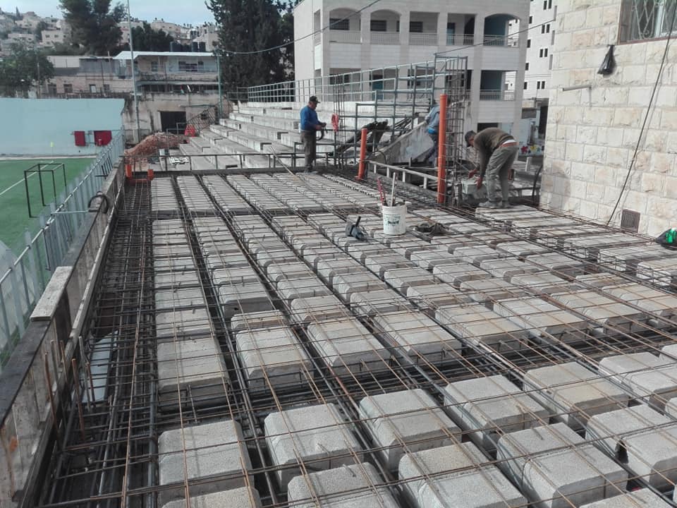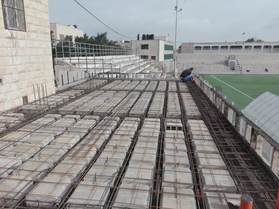 استكمال التجهيزات لصب قاعدة منصة شرف لملعب الشهيد ياسرعرفات